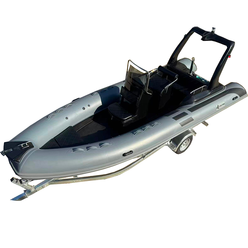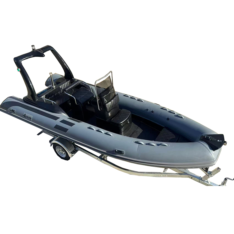 The Rigid intelligent boat and open fiberglass hull rib boat has available sizes of 420cm, 470cm,520cm,550cm and 580cm. They all have luxury boat design with rear seat and middle console. For RIB580, It has complete accessories of 90L fuel tank, stainless steel roll bar with navigation lights, anchor holder, middle console, middle seat and rear seat with seat cushion.