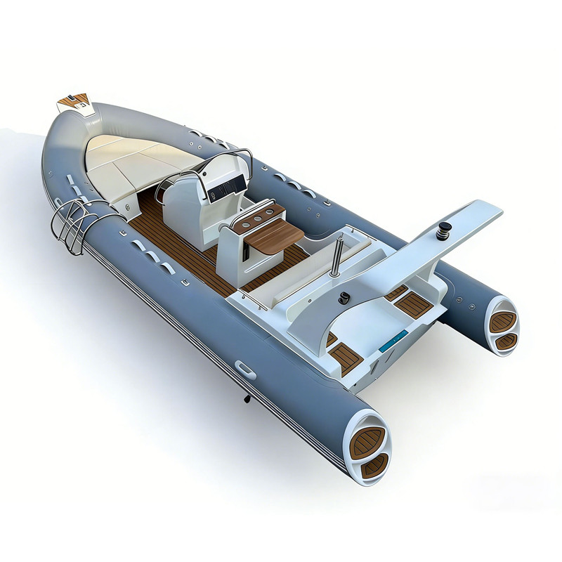 The High-end RIBs with Fiberglass hulls and deluxe commercial rigid inflatable boat has available sizes of 680cm,760cm,800cm,850cm,960cm and 1200cm. For RIB760, It has complete accessories of 280L fuel tank, stainless steel roll bar with navigation lights, anchor holder, middle console, middle seat, rear seat with seat cushion.