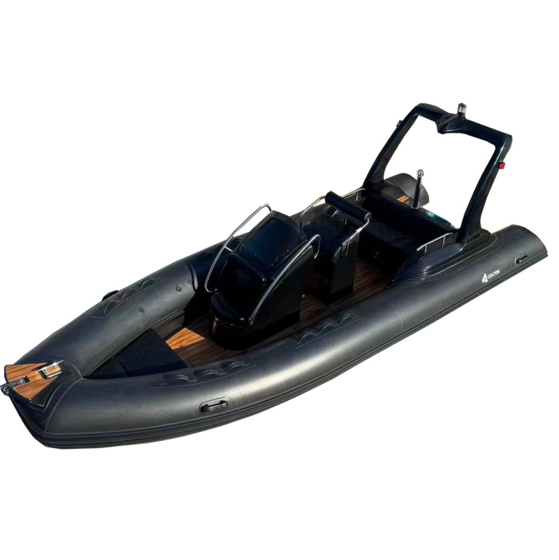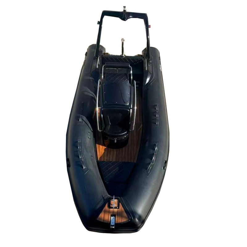 The High-end RIBs with Fiberglass hulls and deluxe commercial rigid inflatable boat has available sizes of 680cm,760cm,800cm,850cm,960cm and 1200cm. For RIB760, It has complete accessories of 280L fuel tank, stainless steel roll bar with navigation lights, anchor holder, middle console, middle seat, rear seat with seat cushion.
