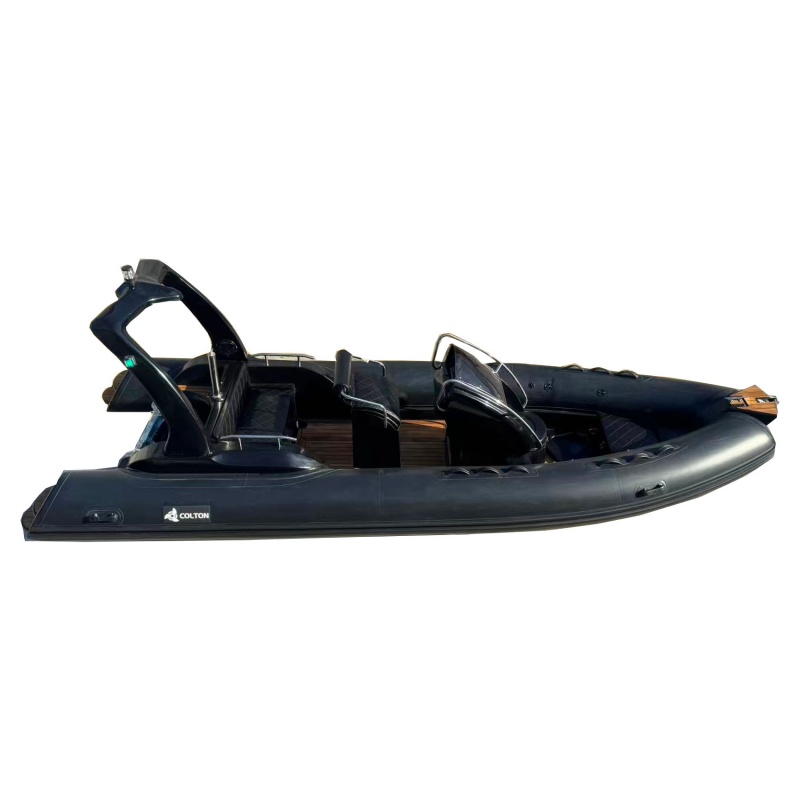 The Rigid bottom inflatable boat and big rib boat has available sizes of 680cm,760cm,800cm,850cm,960cm and 1200cm. For RIB860, It has complete accessories of 300L fuel tank, stainless steel roll bar with navigation lights, anchor holder, middle console, middle seat, rear seat with seat cushion.
