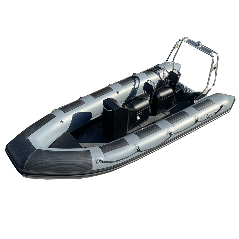 The Rigid intelligent boat and open fiberglass hull rib boat has available sizes of 420cm, 470cm,520cm,550cm and 580cm. They all have luxury boat design with rear seat and middle console. For RIB580, It has complete accessories of 90L fuel tank, stainless steel roll bar with navigation lights, anchor holder, middle console, middle seat and rear seat with seat cushion.