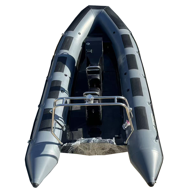 The best inflatable boat with hard bottom and semi rigid hull inflatable boats has available sizes of 420cm, 470cm,520cm and 580cm. A type means simple boat design without rear seat design. For RIB520A, it has big inside boat space and the boat could be used as passengers boats or resuce boats. Middle console. seat. roll bar and fuel tank are optional. Clients can also use rear manual control motor.