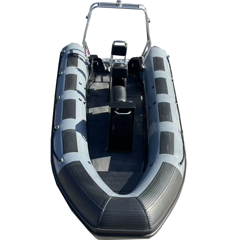 The High-end RIBs with Fiberglass hulls and deluxe commercial rigid inflatable boat has available sizes of 680cm,760cm,800cm,850cm,960cm and 1200cm. For RIB760, It has complete accessories of 280L fuel tank, stainless steel roll bar with navigation lights, anchor holder, middle console, middle seat, rear seat with seat cushion.