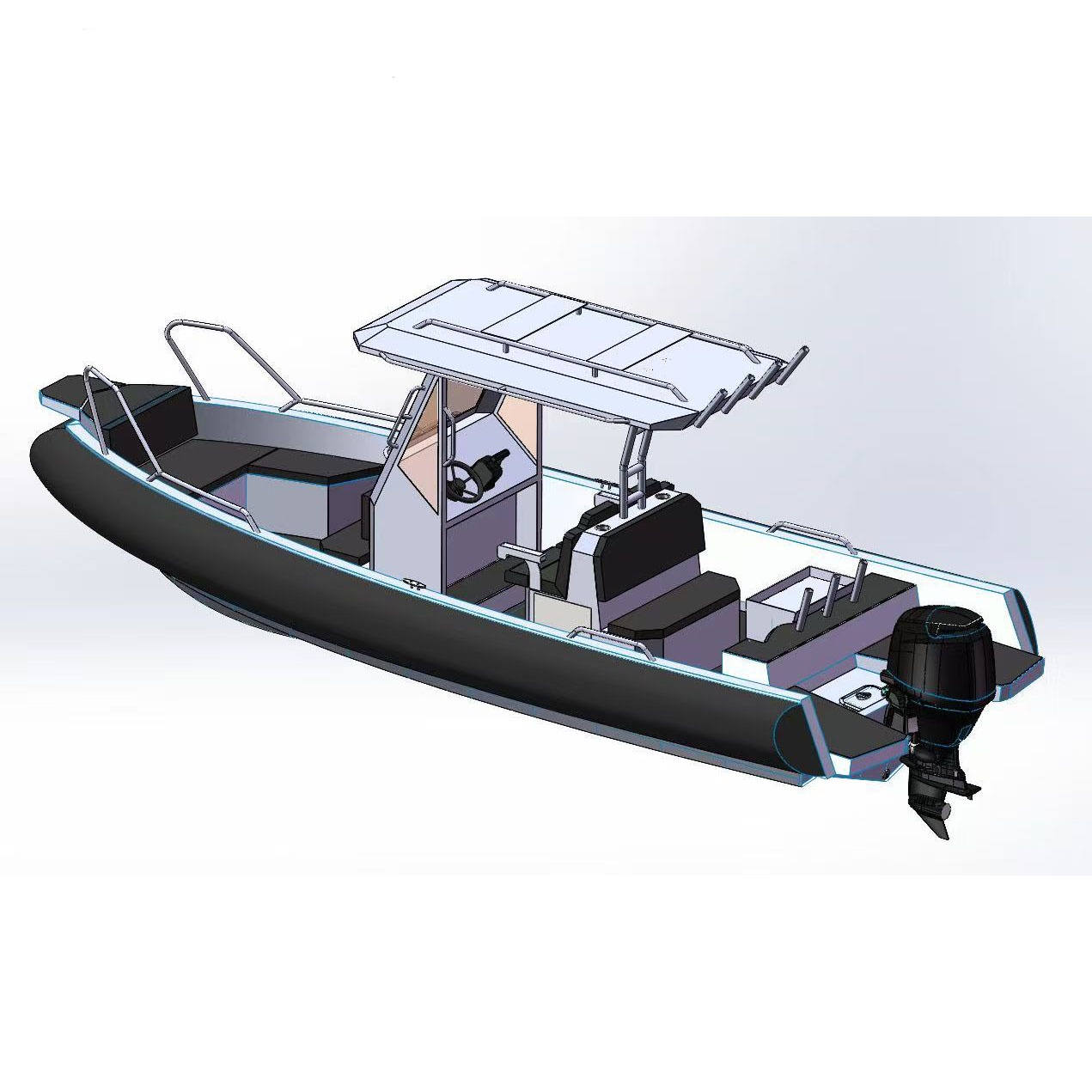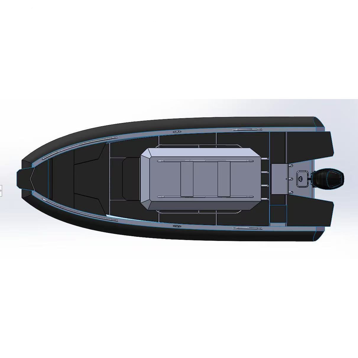 This boat meets the toughest requirements for operation boats, law enforcement and patrol, heavy duty military and commercial use. It features a super-strong aluminum welded hull structure with D shaped tube (D-tube) with built-in flotation inside the hull. The D-TUBE concept is the singular and best solution for professional & commercial grade boats allowing for significantly larger cockpit space and durability in comparison with the traditional O-shape inflatable tube design.