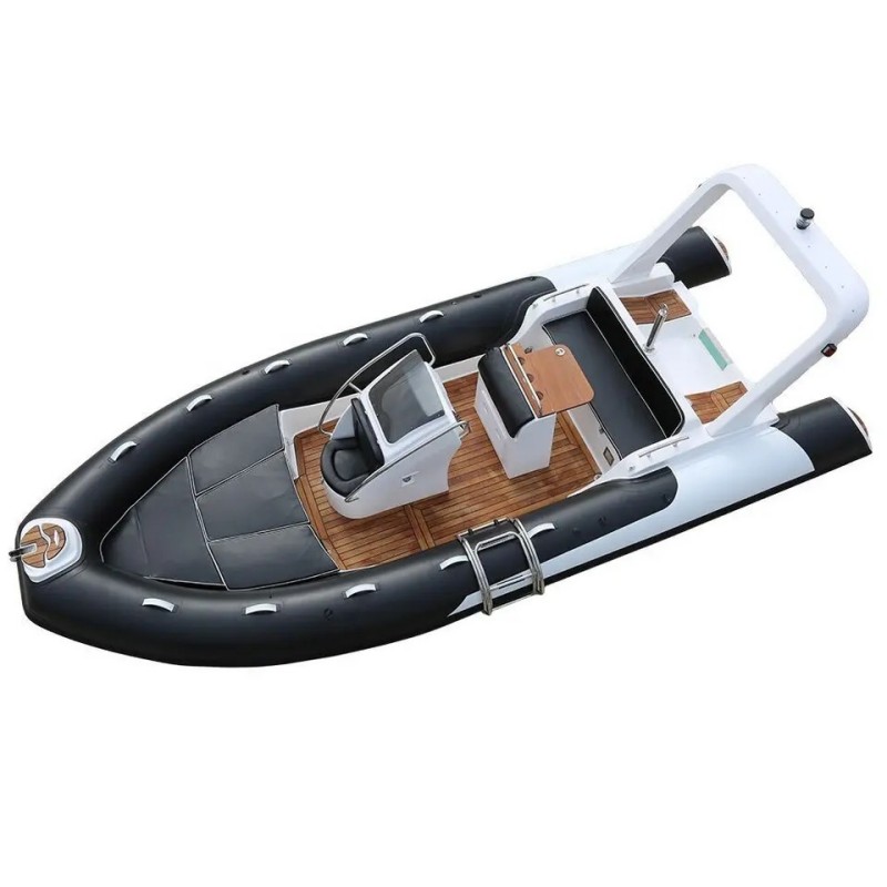 The High-end RIBs with Fiberglass hulls and deluxe commercial rigid inflatable boat has available sizes of 680cm,760cm,800cm,850cm,960cm and 1200cm. For RIB760, It has complete accessories of 280L fuel tank, stainless steel roll bar with navigation lights, anchor holder, middle console, middle seat, rear seat with seat cushion.